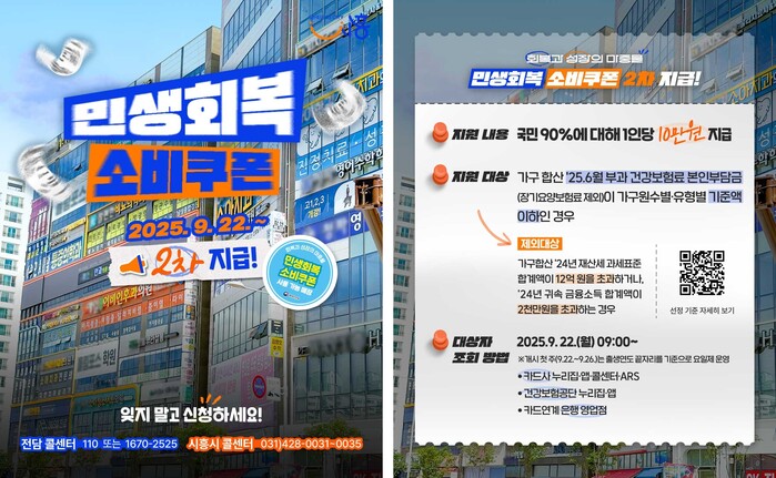 정호기 시흥시 경제국장은 “이번 1차 소비 쿠폰을 통해 소상공인 매출 회복과 가계경제 안정 효과를 확인했다”라며 “2차 지급도 차질 없이 준비해 지역 상권 회복의 마중물이 될 수 있도록 최선을 다하겠다”라고 말했다.