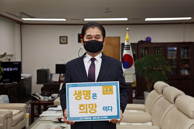안양시의회 최우규 의장은 7일 「2021년 제10회 사람사랑 생명사랑 비대면 걷기축제」의 일환으로 생명에 대한 생각을 전하는 캠페인‘생명은 챌린지’릴레이에 동참했다고 밝혔다.