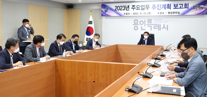 용인특례시는 22일 이 시장 주재로 '2023년 주요업무 보고'를 진행하고, 각 실·국·사업소와 협업기관의 내년도 주요사업 계획을 검토하고 논의했다.