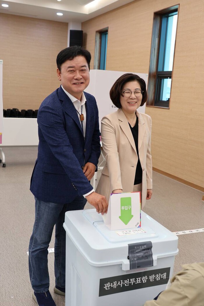 이와 관련해 김보라 안성시장은 29일, 자신의 페이스북을 통해 저도 출근 전 윤종군 국회의원님과 7시에 투표를 했다고 밝혔다.