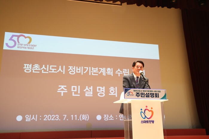안양시는 ‘평촌신도시 정비기본계획 수립 관련 주민설명회’를 열고 정비계획 방향 및 노후계획도시 특별법안 주요 내용을 설명하고 주민 의견을 수렴했다고 12일 밝혔다.