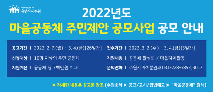 사진/ 2022년도 마을공동체 주민제안 공모사업 홍보물(수원시 제공)