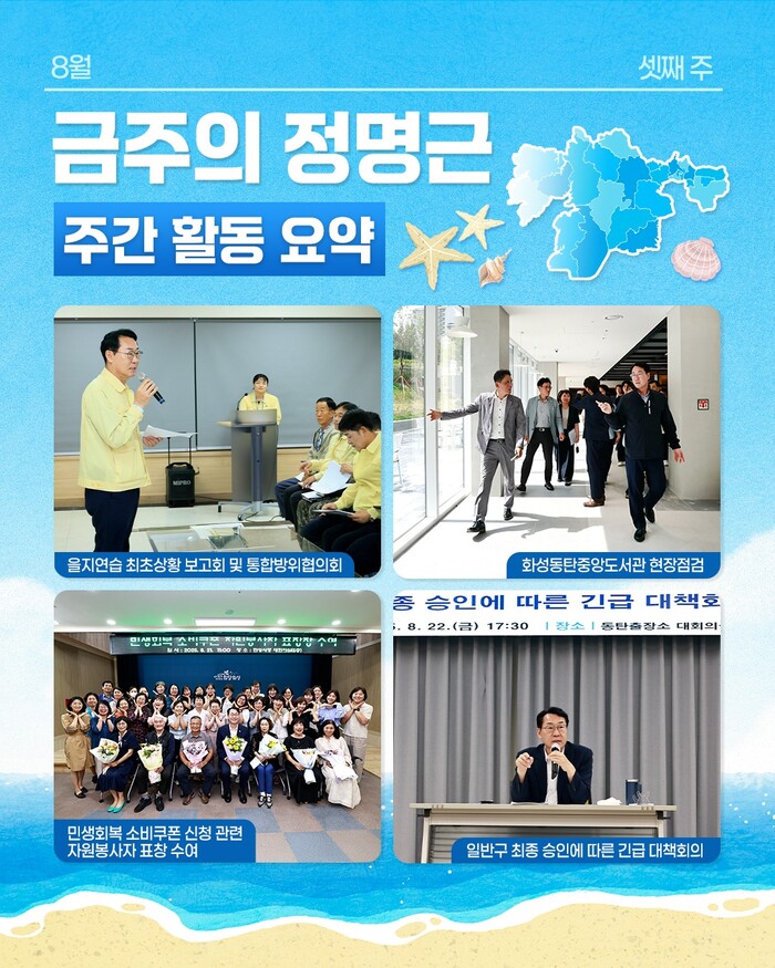 [화성=로컬라이프] 송준형 기자 = 정명근 화성특례시장은 23일, 페이스북을 통해 8월의 끝자락인데도 다시 무더위가 찾아온 것 같다며, 이번 주는 다양한 간담회를 통해 시민 여러분과 소통하며 뜻깊은 시간을 보냈다고 밝혔다.