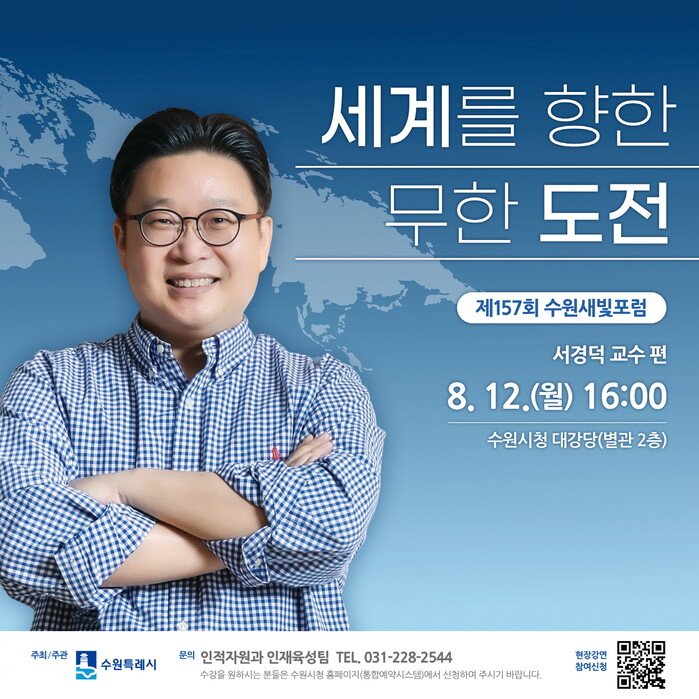 ‘한국 알리미’ 서경덕 성신여대 교수가 8월 12일 오후 4시 시청 대강당에서 열리는 제157회 수원새빛포럼 강연자로 나선다.