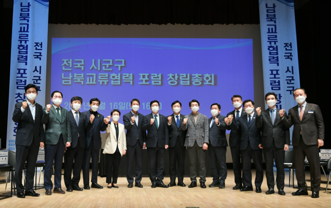 포럼에서는 ‘전국 시군구 남북교류협력 포럼 규약’ 의결 및 임원 선출, ‘단체장 통일 토크’도 진행됐다.