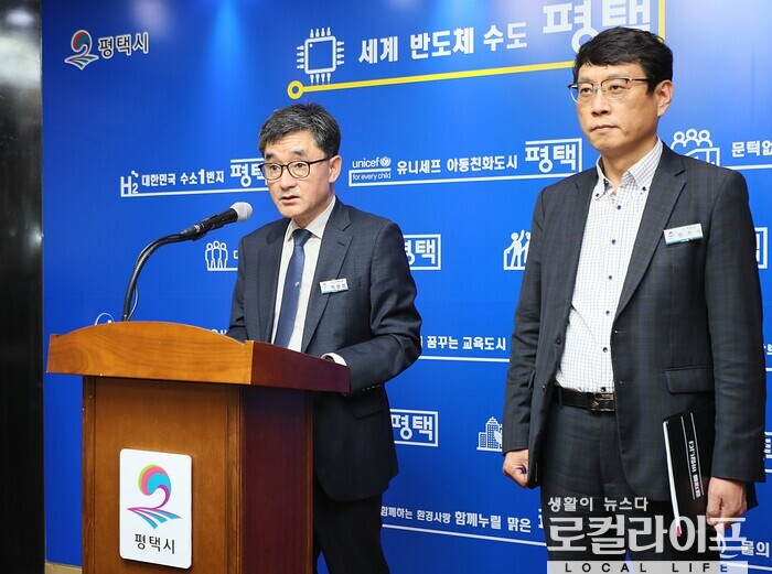 | ▲ 박영철 평택시 도시주택국장이 '공동주택 건축기준'을 공표하고 있다. (사진제공=평택시) |