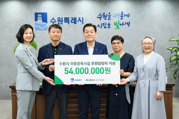 초록우산어린이재단 경기지역본부와 경기후원회가 수원시 내 아동양육시설 아동의 문화탐방을 지원하기 위해 5400만 원의 후원금을 수원시에 전달했다.