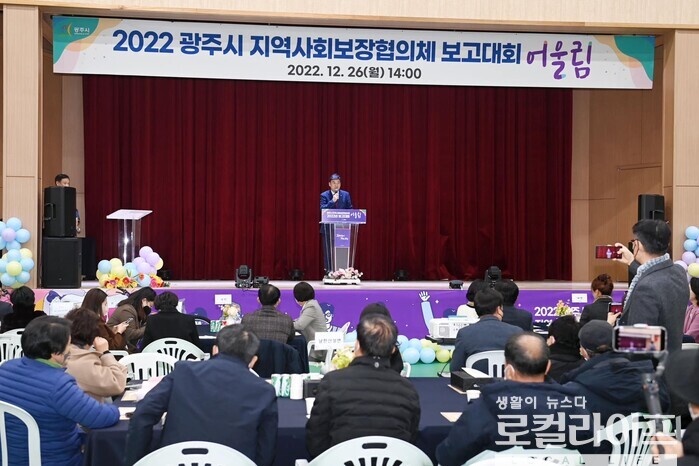 | ▲ 방세환 경기도 광주시장이 ‘2022 광주시 지역사회보장협의체 보고대회’에서 인사말을 하고 있다. (사진출처=방세환 페이스북) |