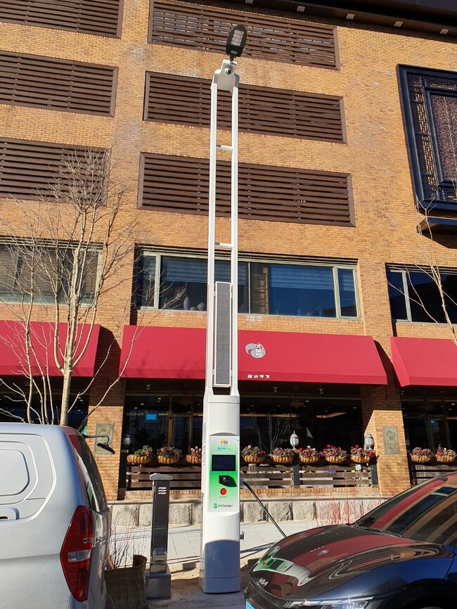 수원시가 전국 최초로 가로등 형태의 전기차 급속충전기를 노상 주차장에 설치했다.