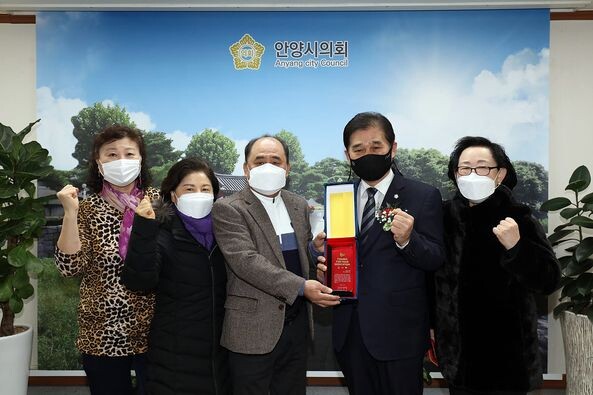 “시민정의사회실천위원회에서 이인주 대표님과 임원진 3분이 안양시의회 의장실 방문해 감사패 수여”