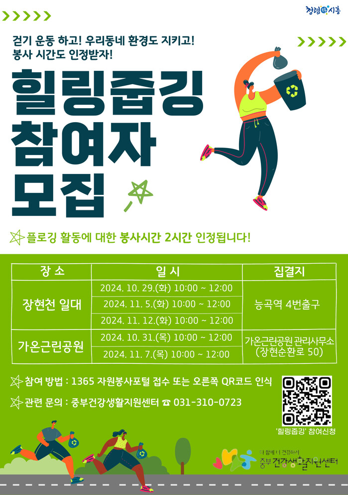 ‘힐링 줍깅’은 걷기 운동을 하면서 주변 쓰레기를 줍는 환경 보호 활동이다. 시민들은 장현천 일대와 가온근린공원에서 활동하며, 깨끗한 동네 만들기에 동참할 수 있다. 시는 이번 프로그램을 통해 건강한 생활 습관을 형성하고, 지역 환경 개선에 앞장선다.