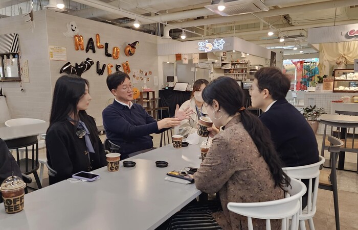 [로컬라이프] 송준형 기자 = 이민근 안산시장은 19일, ‘신안코아 복합청년몰’에서 직원들과 함께 점심식사를 가졌다.