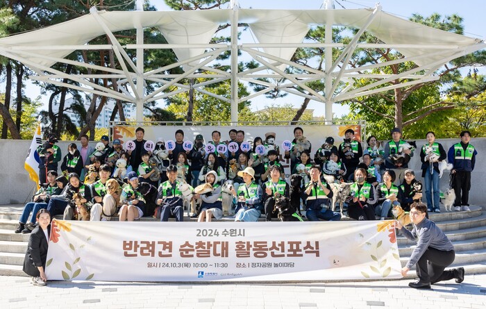 [수원=로컬라이프] 조준영 기자 = 수원시는 3일, 반려견 순찰대 활동선포식을 가졌다.