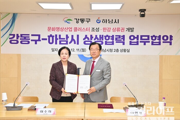 [하남=로컬라이프] 송준형 기자 = 하남시와 강동구는 11일, ‘상생협력 업무협약’을 체결했다.