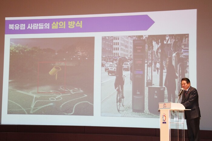 최 시장은 우선 덴마크의 친환경 쓰레기소각장 ‘코펜힐(Copenhill)’을 소개했다. 기피 시설인 소각장에 첨단 정화시설을 갖춰 해로운 공기가 배출되지 않도록 했다. 또 산이 부족한 덴마크 지형을 고려해 스키·등산을 즐길 수 있도록 사계절 스키장, 인공암벽 클라이밍, 하이킹 코스를 조성해 시민이 즐겨찾는 휴양시설이 됐다. 최 시장은 “우리 시에도 대규모 건설사업이 다수 계획돼있다”며 “공직자들의 창의적 발상이 시민 행복을 증대시키는 발판이 된다”고 강조했다.