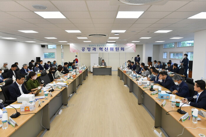 성남시장직 인수위원회(위원장 임종순)는 23일 오전 인수위원회 대회의실에서 인수위원 전원이 모여신상진 당선인에게 중간성과를 보고하는 회의를 가졌다.