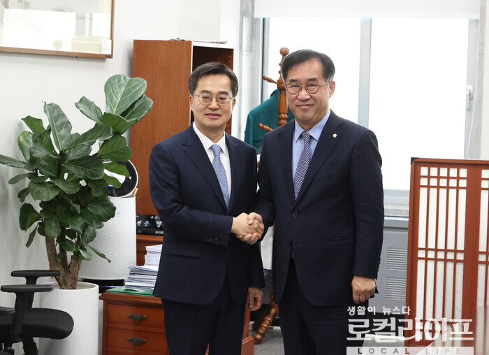 [경기=로컬라이프] 임현상 기자 = 김동연 경기도지사가 국회를 방문해 맹성규 국토교통위원장을 만나 '제5차 국가철도망 구축계획'에 경기남부광역철도를 비롯한 경기도 신규사업을 대폭 반영해 줄 것을 요청했다.