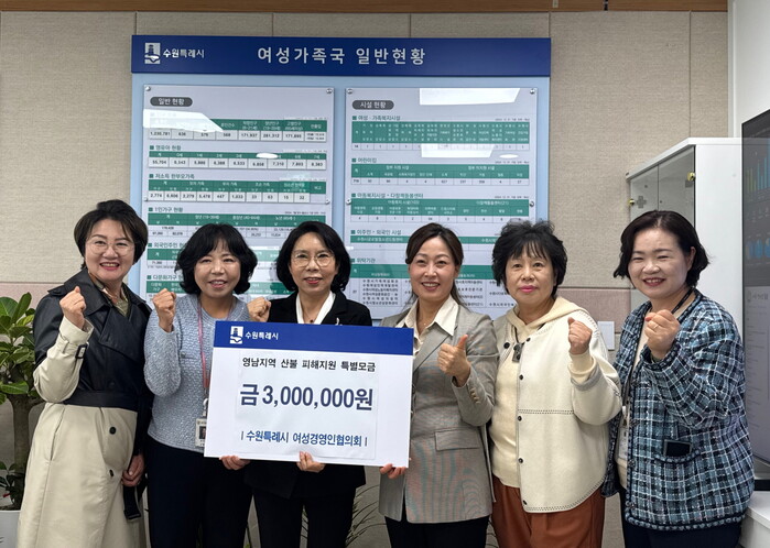 기부금은 수원시 여성경영인 협의회 회원들의 모금으로 마련했다. 경기도사회복지공동모금회 ‘2025년 영남 지역 산불피해 지원 특별모금’을 통해 산불 피해 주민 지원, 지역 복구 등에 사용될 예정이다.