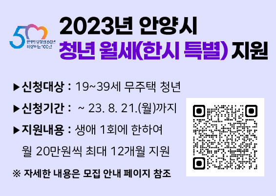 최대호 안양시장은 “청년의 주거 안정을 위해 월세 지원 사업을 확대 추진한다”며 “주거지원 외에도 청년이 안양에서 꿈과 희망을 실현할 수 있도록 다양한 정책들을 발굴하고 적극 추진하겠다”고 말했다.