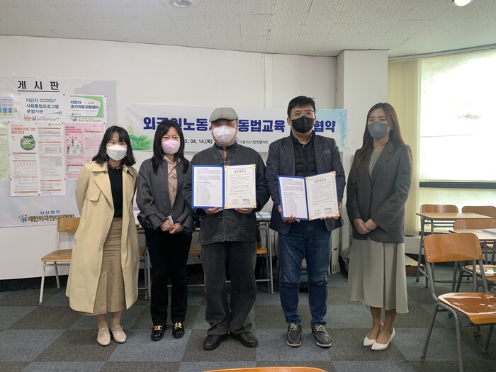 두 기관은 14일 (사)재한외국인지원협회 교육장에서 ‘외국인 노동자 노동법 교육 업무협약’을 체결하고, 협력을 약속했다.