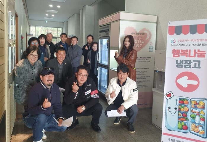 우정읍 지역사회보장협의체 주도 및 주민참여예산으로 마련된 행복나눔 냉장고는 주민들의 자발적인 기부를 통해 이웃에 식료품을 나누는 냉장고로, 누구나 음식을 후원하고 가져갈 수 있다.