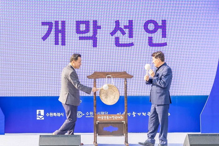 이와 관련해 이재준 수원특례시장은 이날 자신의 페이스북을 통해 오늘 개막식에서 마을활동가 세 분께 표창패를 드리고 개막 퍼포먼스에도 참여했다. 강원도 아리랑과 뱃노래를 우리 시에 맞춰 개사해 부르니 흥이 더한다고 전했다.