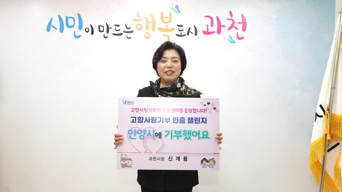 신계용 과천시장은 18일, 올해 첫 시행된 고향사랑기부제의 성공적인 정착과 기부 문화의 확산을 위해 ‘고향사랑기부 인증 챌린지’에 동참했다.