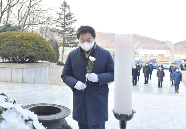 [로컬라이프] 임병택 시장은 1월 4일 오전 시흥시 논곡동에 위치한 현충탑을 참배하며 2021년 신축년 새해를 시작했다.