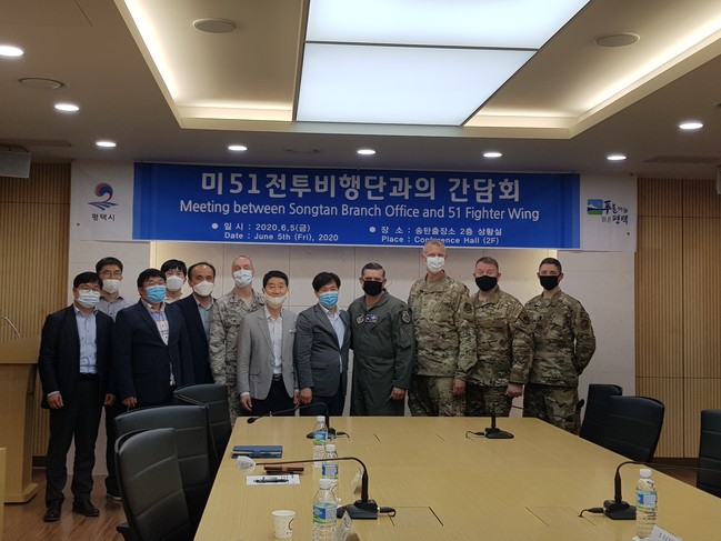 [평택=로컬라이프] 송준형 기자 = 평택시 송탄출장소는 지난 5일 미 51전투비행단장(대령 곤잘레스) 및 임무지원전대장(대령 만토바니) 등 군 지휘부와 상호 우호 교류 추진을 위한 간담회를 개최했다.