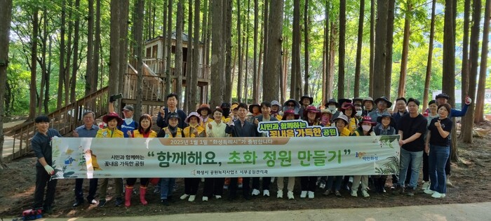 화성시(시장 정명근)가 29일 지역주민, 자원봉사자, 시민정원사, 도·시의원 등 30여 명과 함께 향남읍 살구꽃 공원에 꽃무릇을 식재하며 초화정원을 조성했다.