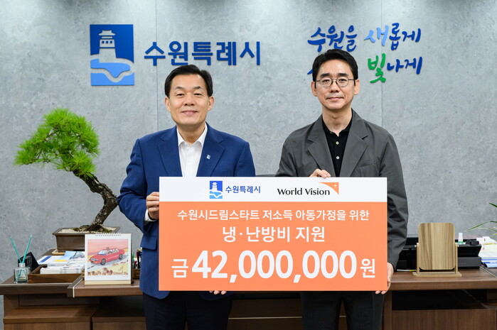 월드비전 경기남부사업본부가 “수원시 드림스타트 아동 가정에 냉·난방비로 사용해 달라”며 수원시에 4220만 원을 후원했다.
