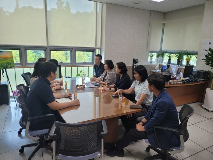 사진/수원 영통구보건소와 군산시보건소 관계자들이 영통구보건소에서 모기 방제사업 등에 대한 회의를 진행하고 있다.(사진제공=수원시)