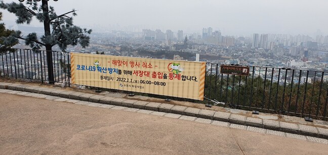 광교산·칠보산의 ‘해돋이 명소’ 4곳도 1월 1일 오전 6시부터 8시 30분까지 출입을 통제한다. 광교산 종루봉과 광교헬기장, 칠보산 제1전망대와 제2전망대에 폴리스라인을 설치하고, 직원을 배치해 등산객의 출입을 통제할 예정이다.