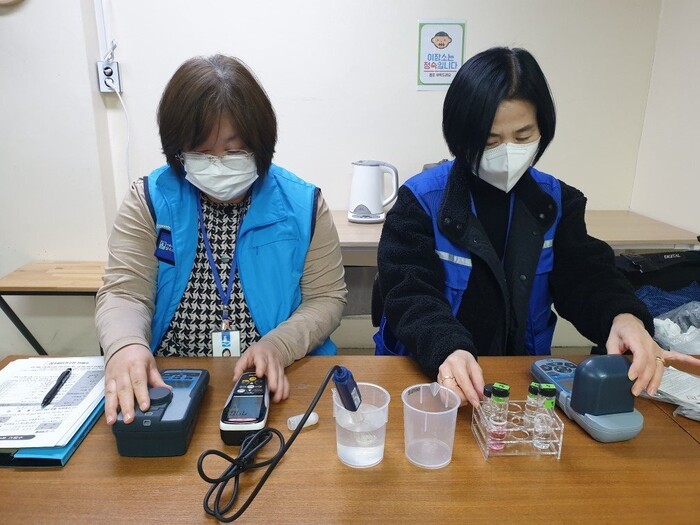 전문교육을 받은 워터코디(수돗물 수질 검사원)가 11월 30일까지 사회복지시설, 공공·다중이용시설, 위생시설 등 관내 수용가 3520개소를 방문해 수돗물 수질 검사를 한다.