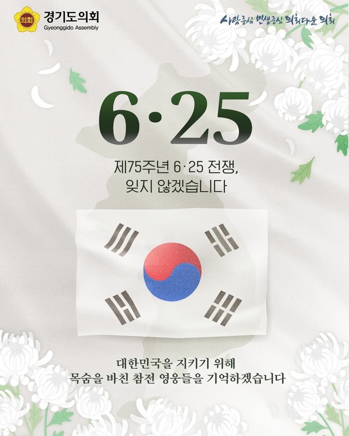 [경기=로컬라이프] 송준형 기자 = 김진경 경기도의회 의장은 25일, 자신의 페이스북을 통해 6.25전쟁 75주년, 전쟁은 한순간이었지만, 그 상처는 수십 년을 지나도록 이어졌다고 전했다.