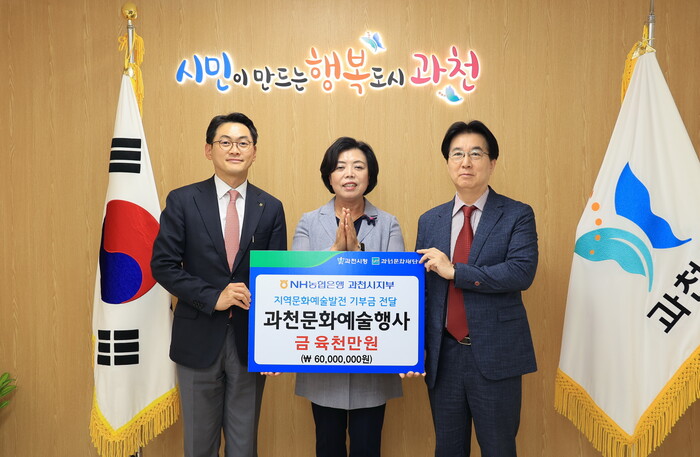 신계용 과천시장은 “과천시가 지식·문화예술도시로 도약할 수 있도록 늘 협조해 주시는 NH농협 과천시지부에 감사드리며, 기부금은 시의 문화예술 발전과 시민들을 위해 소중하게 사용될 것”이라고 전했다.
