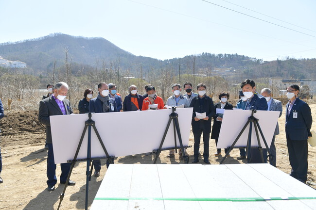 서종면 문호천~북한강 산책로 연결사업 현장에서는 천혜의 자연환경으로 산책로를 조성해 가족 모두가 쉴 수 있는 주민의 힐링공간이 될 것이라며, 산책로 중간에 화장실, 정자 등 주민편의 시설 설치도 꼼꼼히 챙길 것을 당부했다.