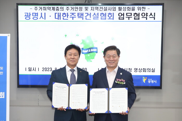 광명시(시장 박승원)가 대한주택건설협회 경기도회와 협약을 맺고 주거 취약계층을 지원한다.