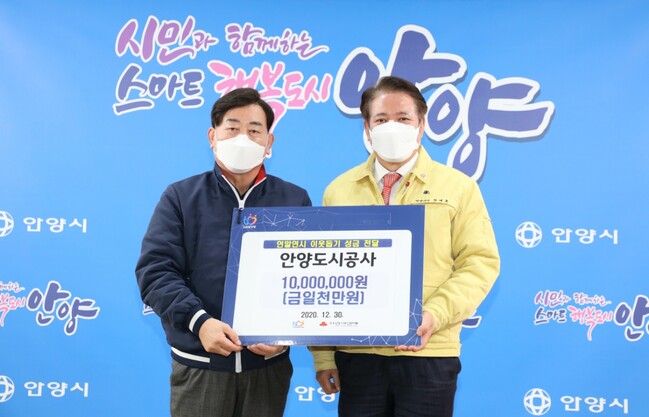 [로컬라이프] 안양도시공사(사장 배찬주)는 지난 30일 어려운 이웃을 돕기 위해 전 임직원이 십시일반 모은 성금 1,000만 원을 안양시(시장 최대호)에 전달했다.