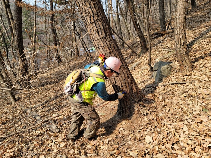 수원시공원녹지사업소가 소나무 재선충병(材線蟲病) 피해를 예방하고, 건강한 생태 환경을 보존하기 위해 광교산 산림욕장에 있는 소나무를 대상으로 방제 작업을 했다.