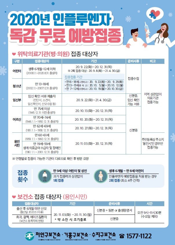 [로컬라이프] 용인시, 겨울철 시민 건강 위해 '무료 독감 예방 접종'...9월8일~ 내년 4월30일까지