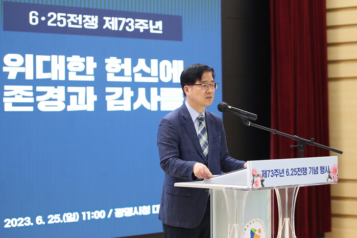 광명시(시장 박승원)는 6.25 전쟁의 호국영령과 참전용사들의 숭고한 희생정신을 기리기 위한 제73주년 기념행사를 25일 시청 대회의실에서 국가유공자 등 100여 명이 참석한 가운데 개최했다.