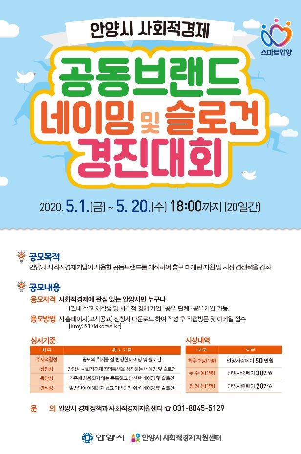 [안양=로컬라이프] 송준형 기자 = 안양시가 사회적경제기업의 마케팅을 지원을 위해 오는 20일까지 사회적경제 공동브랜드를 공모한다.