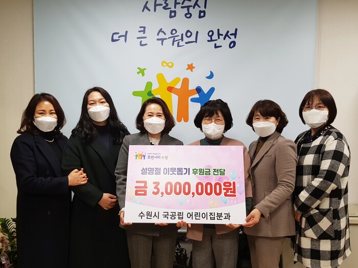 수원시 국공립어린이집 단체가 설 명절을 앞두고 “경제적으로 어려운 이웃들에게 전달해 달라”며 수원시에 300만 원을 기부했다.
