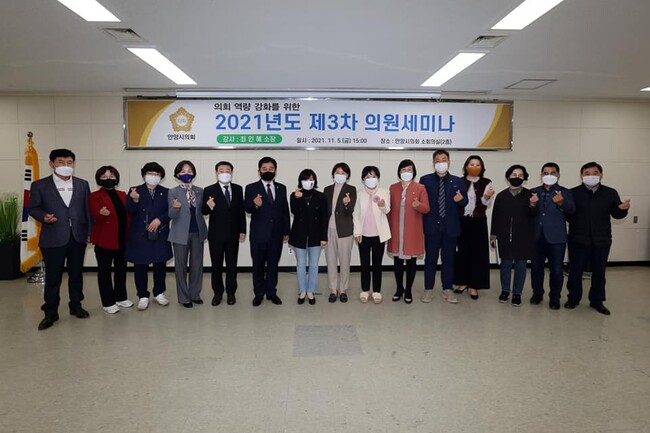 [로컬라이프] 송준형 기자 = 안양시의회는 지난 5일, 2층 소회의실에서 시의원과 의회사무국 직원을 대상으로 의회 역량 강화를 위한 ‘2021년도 제3차 의원세미나’를 실시했다고 밝혔다.
