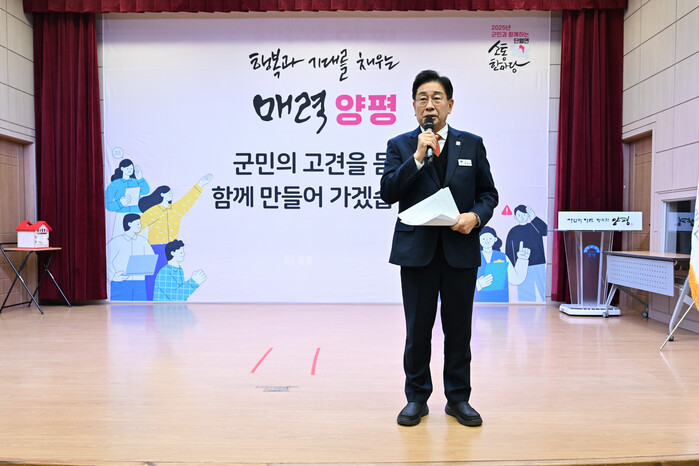 전 군수는 이어 지난 6일 양평읍을 시작으로 오늘(22일) 단월면까지 새해 읍·면 방문이 마무리되었다면서, 군민 여러분의 소중한 목소리를 들으며 을사년 새해를 시작할 수 있어 기쁘게 생각한다. 건의사항은 신속히 검토하고 진행 상황을 군청 홈페이지를 통해 군민여러분과 공유하겠다고 말했다.