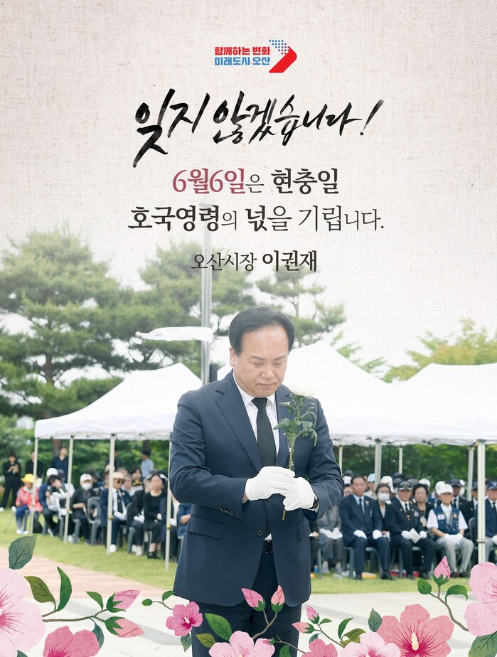 이와 관련해 이권재 오산시장은 이날 자신의 페이스북을 통해 오산시는 오늘의 대한민국을 있게 한 순국선열과 전몰장병의 숭고한 희생과 헌신을 기리며 그들의 뜻을 기억하고자 한다고 밝혔다.