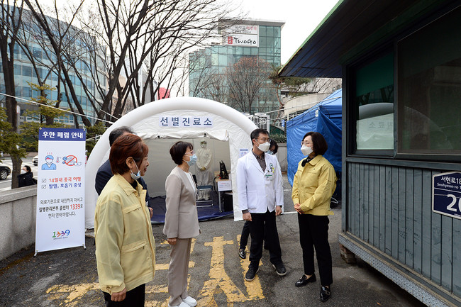 은 시장은 보건소 방문 후 분당차병원과 분당제생병원의 선별진료소를 차례로 방문하여 대응 상황 등을 보고받고 근무 의료진을 격려했다. 성남시는 현재 3개구 보건소와 성남시의료원, 분당차병원 등 8곳의 선별진료소를 운영하고 있다.