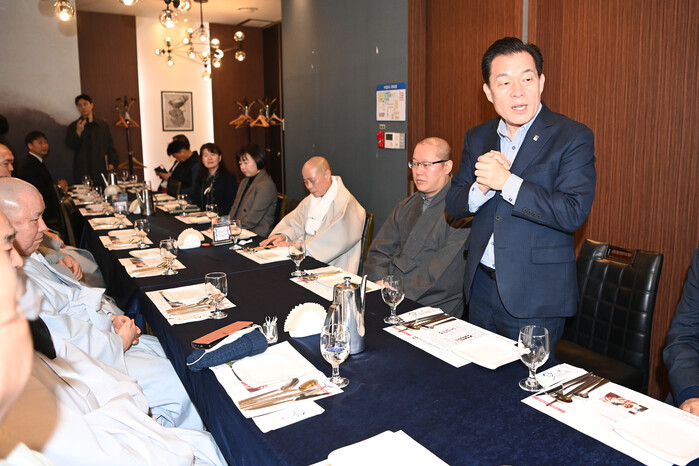 이재준 수원특례시장이 1일 팔달구 한 음식점에서 수원특례시 불교연합회와 간담회를 열고 “불교계를 비롯한 종교계의 목소리에 귀 기울이며 많은 가르침을 받겠다”고 말했다.