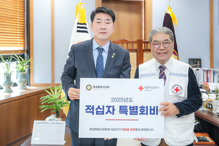화성특례시의회 배정수 의장은 17일 오전 화성특례시의회 의장실에서 2025년도 적십자 특별회비를 전달하였다.